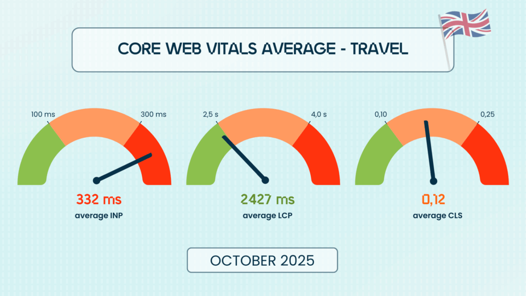 💡 Takeaway: While the sector is finally showing movement, travel brands still have work to do. In such a competitive, conversion-driven market, even minor lags in booking flow or content rendering can mean lost revenue, especially in the weeks leading up to Black Friday and Christmas travel spikes.