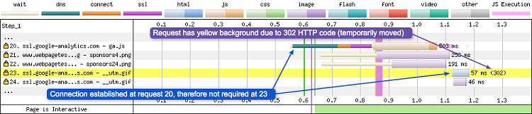 Comme vous pouvez le voir dans l’image ci-dessus, la préconnexion semble “flotter” dans la timeline. Cela se produit bien avant que la requête réelle pour l’image ne soit faite. Le navigateur se sert de cet indicateur (hint) pour se connecter à l’avance, avant que cela ne soit nécessaire. Pour plus d’informations sur les indications de préconnexion, je vous recommande de lire ce post d’Andy Davies.