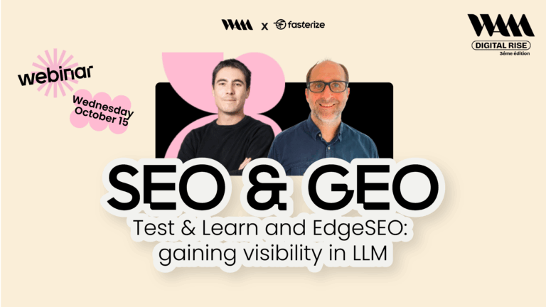 Le 15 octobre à 11h, nous animons un webinar avec l’agence WAM, dédié à la construction d’un SEO agile, capable de s’adapter en continu à l’IA générative.